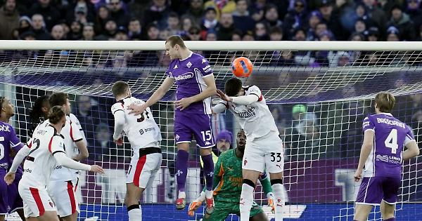 FIRENZE - Il Milan riacciuffa la Fiorentina soltanto al 90°, beffa Kean e compagni che gustavano già il dolce sapore dei tre punti e consegna il titolo di campione d'inverno all'Inter. Al Franchi i rossoneri vanno vicino alla seconda sconfitta stagionale in campionato, mentre alla Fiorentina, come era già avvenuto mercoledì scorso contro la Lazio, rimane il rimpianto per un vantaggio non concretizzato e il pareggio incassato in extremis. Nkunku, entrato nel corso della ripresa, salva Allegri e i suoi dopo l'1-0 di Comuzzo al termine di un match equilibrato con i gigliati che hanno preso anche un palo con il nuovo acquisto Brescianini. Il copione del match è chiaro fin dal fischio di inizio con i padroni di casa che fanno la partita e gli ospiti, con Allegri che rinuncia contemporaneamente a Leao, Rabiot e Modric, ad agire di rimessa. La scelta per i rossoneri pagherebbe anche, se Pulisic non andasse incontro a uno dei suoi peggiori pomeriggi in termini di finalizzazione. Per due volte Fullkrug, al debutto da titolare, gli serve ottimi assist di sponda per presentarsi solo davanti a De Gea (17' e 22'), ma l'americano fallisce, così come fa anche in contropiede al 26'. La Fiorentina risponde con cross pericolosi di Gudmundsson e Gosens da sinistra non raccolti dai compagni di squadra. La gara non è nervosa ma ci pensa Massa, non in grande giornata, a renderla tale, prima ammonendo Kean all'ennesimo fallo subito non fischiato e poi espellendo Vanoli, per proteste, dopo un richiamo prolungato del direttore di gara su Gosens. Dopo un buon inizio di ripresa di marca viola, Allegri inserisce 3 cambi allo scoccare dell'ora di gioco fra cui Leao e Rabiot. Le sostituzioni, a cui aggiungere Fofana per Loftus Cheek al 65', arrivano un soffio prima del gol della Fiorentina realizzato da Comuzzo che anticipa di testa sia Bartesaghi che Pavlovic. Proprio quest'ultimo è l'uomo che lascia il campo per Nkunku a 15' dalla fine, con Bartesaghi arretrato in difesa. Il Milan assedia i 30 metri finali viola nella parte conclusiva della sfida, i brividi per i toscani arrivano in particolare su conclusione di Ricci da fuori area (88'), poco prima del pareggio di Nkunku al 90' che sfrutta al meglio una palla recuperata a centrocampo da Saelemekers su Fagioli. Prima del triplice fischio traversa di Bresciani, poi parata decisiva di Maignan su Kean. Finisce 1-1. - Foto Ipa Agency - . xb8/ari/red 11-Gen-26 17:24