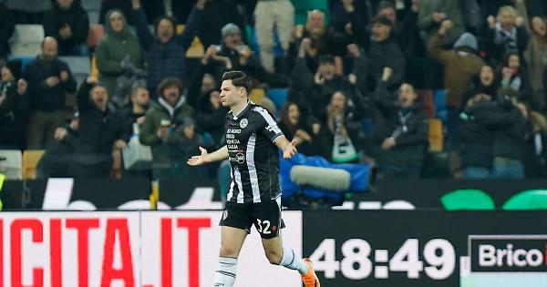 UDINE - La Roma frena e perde il quarto posto. Nel Monday Night della 23^ giornata di Serie A, i giallorossi cedono 1-0 in casa dell'Udinese, che conquista i tre punti grazie al gol di Ekkelenkamp a inizio ripresa. Al Friuli si gioca con il settore ospiti chiuso dopo il provvedimento di alcune settimane fa, ma sugli spalti del Bluenergy Stadium sciarpe e magliette giallorosse non mancano. È l'Udinese a prendere le iniziative più interessanti in avvio. Poco prima del 10', Svilar interviene due volte in un minuto su Atta ed Ekkelenkamp, protagonista di un'altra chance per i friulani al 25', quando Mancini lo anticipa di un soffio su un cross di Davis. Di Malen l'unica conclusione pericolosa degli ospiti, quando alla mezz'ora l'olandese si gira in area e calcia, trovando la respinta di Okoye. Si va così all'intervallo sul risultato di 0-0. A inizio ripresa, dopo un tentativo di Wesley neutralizzato dall'estremo difensore bianconero, è l'Udinese a sbloccare la gara. Al 49' Ekkelenkamp si porta alla battuta di una punizione da poco pericolosa, ma il suo tiro, dopo aver trovato la deviazione di Malen, inganna Svilar e finisce in rete. 1-0. I padroni di casa rallentano per tirare il fiato, mentre Runjaic è costretto a togliere Davis, che dopo uno scatto si tocca dolorante l'adduttore sinistro. Al 72' arriva la prima occasione per la Roma nel secondo tempo, con un tiro di Malen respinto da Kristensen. Brividi per gli ospiti al 76', quando Ekkelenkamp fa di nuovo paura calciando una punizione sotto la traversa: Svilar fa buona guarda e mette in angolo. Nonostante il risultato, il match rimane equilibrato fino all'ultimo, perché l'Udinese gioca da grande squadra e non si arrocca in difesa. Al 90', durante una mischia nell'area bianconera, Cristante spinge in porta il pallone con un colpo di testa, ma Sacchi annulla per il fuorigioco di Tsimikas, autore del cross per il compagno. A recupero inoltrato miracolo di Okoye, che nega il pareggio a Mancini. Finisce così 1-0 a Udine. La Roma fallisce il controsorpasso alla Juventus, mentre i bianconeri salgono in nona posizione a quota 32: sognare l'Europa non è impossibile. - Foto Ipa Agency - . mec/mc/red 02-Feb-26 22:57