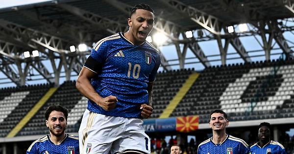EMPOLI - La Nazionale Under 21 fa il proprio dovere e, fra le mura amiche del Computer Gross Arena di Empoli, batte per 4-0 la Macedonia del Nord in una gara valida per il girone di qualificazione agli Europei 2027. In attesa di Polonia-Armenia in programma domani gli azzurrini agganciano i polacchi in testa alla classifica e si proiettano con i migliori auspici alla sfida di martedì prossimo contro una delle terze in classifica, ovvero la Svezia. Buoni i segnali arrivati dai ragazzi guidati da Silvio Baldini che hanno mostrato buone trame di gioco e un gran dominio nel possesso palla e nell'iniziativa, peccando invece in fase realizzativa. L'Italia passa in vantaggio al 3' con Ndour su cross di Bartesaghi, con il centrocampista della Fiorentina, al secondo gol nel giro di quattro giorni, perfetto nell'inserirsi in area su cross dell'esterno sinistro azzurro. E' Lipani a guidare i propri compagni dalla regia e non è un caso che proprio il centrocampista centrale degli azzurrini prima centri un palo su assist di Cherubini (12') e poi una traversa su angolo di Bartesaghi (17'). La Macedonia del Nord ci mette un po' a organizzarsi in campo con il modulo 4-2-3-1 scelto da Stanikj che lascia spesso gli ospiti in inferiorità numerica nella zona nevralgica del campo. Per Palmisani un pomeriggio tranquillo, così anche per la difesa italiana che però trova la prova lucida dei centrali Comuzzo e Chiarodia. A inizio ripresa dentro Kayode al posto di Favasuli, ammonito per una simulazione, e l'Under azzurra ricomincia ancora a 100 all'ora con il raddoppio di Lipani, su conclusione da fuori area deviata in maniera ininfluente da Djekov, e poi il momentaneo 3-0 con Ekhator su assist di Dagasso, tutto nel giro di 2'. Il risultato consolidato nel punteggio permette a Baldini di mandare in campo anche alcuni giocatori emergenti nei rispettivi club come Venturino e Fini, riposo fra gli altri per Lipani, con al suo posto nel ruolo di regista Ndour che diventa anche capitano. Nel finale spazio per l'esordio con l'Under 21 per Alessio Cacciamani e per il quattro a zero finale con Fini bravo a procurarsi un rigore e a batterlo spiazzando Ljupche. - Foto Image - . ari/gm/red 26-Mar-26 20:15