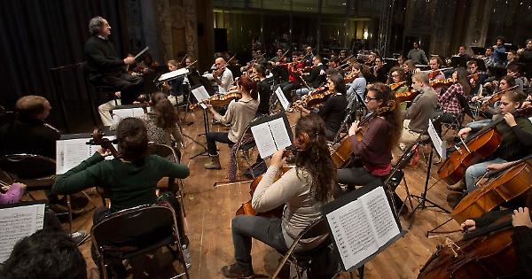 L’Orchestra Giovanile Luigi Cherubini, diretta da Riccardo Muti, durante le prove