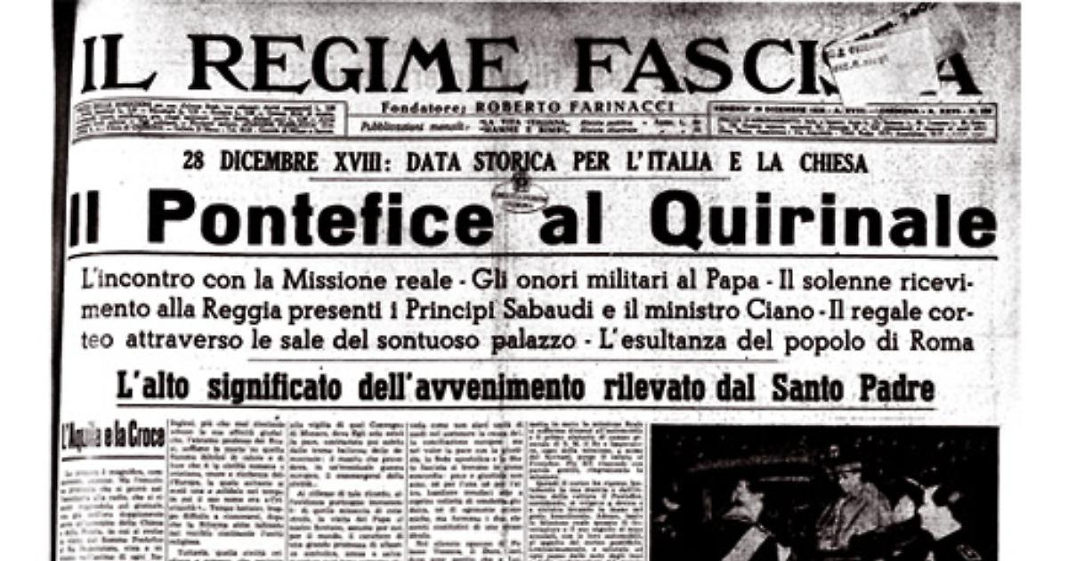 Memorabile giornata è questa, ancora una grande giornata nella storia splendente dell'Italia nuova . Pio XII, capo della Cristianità ed i Sovrani d'Italia stanno pe r incontrarsi nella Reggia del Quirinale , a non molti giorni di distanza da quando il Re Imperatore e l a Regina Imperatrice salirono al Vaticano.