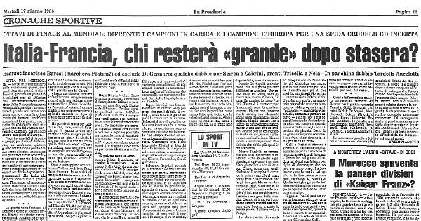 È esordio anche perchè la Coppa apre con la nuova formula ad eliminazione diretta dopo un primo turno soft che le «grandi » hanno usato per limare la preparazione ed entrare in clima mondiale più che per farsi largo senza risparmi energetici. E debutto per Bearzot quando dice: «È la prima volta che mi capita di giocarmi tutto in una sola partita così presto, a questo punto della competizione. Sono tragici ottavi». Più preoccupato di altre volte? «Sono le preoccupazioni di 40 anni di calcio, sempre le stesse alla vigilia delle partite». Davanti però stavolta c'è il favoloso centrocampo francese ed un Platini che, recitando la partita a soggetto, crea più problemi di marcatura. «Dipenderà da quale posizione assumerà in campo: ho pronte varie soluzioni interne ».