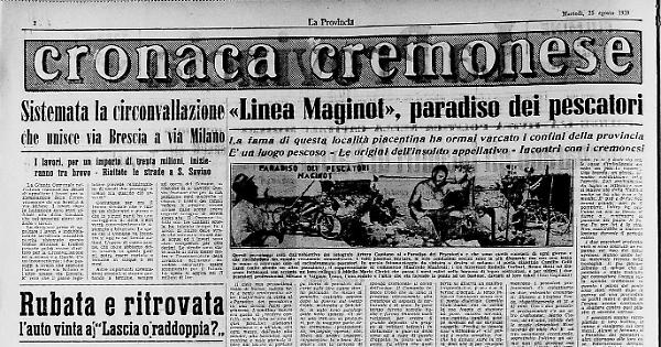 Oggi la fama della «linea Maginot» ha varcato i confini della provincia di Cremona e Piacenza e non di rado nelle giornate festive si vedono pullman targati Milano, Bologna e di altri centri molto lontani. Sono gruppi di pescatori che sanno che torneranno a casa con un bottino discreto. I soci delle società canottieri cremonesi scelgono la « linea Maginot » come meta preferita delle loro gite e numerose sono le barche che sostano davanti al « Paradiso dei pescatori » come è stato denominato il locale che è gestito per conto dell'ENAL da un cremonese: Giuseppe De Micheli.