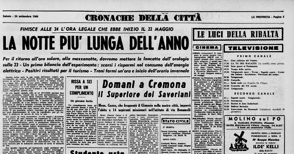 Di ora legale, quindi, non se ne dovrebbe parlare fino all'anno prossimo, tranne che in sede parlamentare, dove la Commissione Interni della Camera sta esaminando la proposta di legge di cui deputati democristiani (Foderaro e Caiazza), i quali vorrebbero che, a partire dal prossimo anno, il periodo di « ora estiva » avesse inizio la prima domenica di aprile e termine l'ultima domenica di ottobre. Tale modifica è dettata dalla necessità di ovviare ad alcuni degli inconvenienti che sono venuti alla luce in questo periodo. E' già possibile, infatti, tracciare un primo bilancio, sia pure approssimato, di cosa ha significato, per gli italiani, il disporre di un'ora di luce in più.