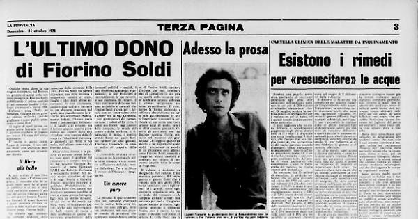 Qualche mese dopo la sua tragica scomparsa nel Borneo un gruppo di amici volle rendere omaggio a Fiorino Soldi, pubblicando il primo capitolo di un romanzo inedito («Colloqui cremonesi», aprile 1968, «L'altana», pagg. 79-85): un romanzo rifiutato da un grande editore milanese, perché giudicato troppo pulito come tema e come stile.