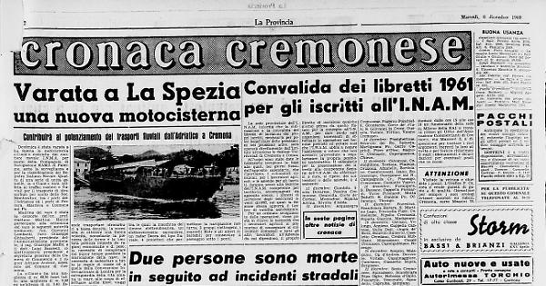 Domenica è stata varata a La Spezia la motocisterna «Ciane» costruita dal cantiere navale I.N.M.A. per conto della Compagnia di Navigazione RAMA di Palermo, sotto la sorveglianza e per la classificazione del Registro Italiano Navale. Quarta di una serie di unità gemelle, la «Ciane» sarà adibita ai traffici costieri e fluviali per il trasporto di idrocarburi per conto della Soc. Montecatini, tra i porti dell'Adriatico ed i porti di Ferrara, Mantova e Cremona sul Po.