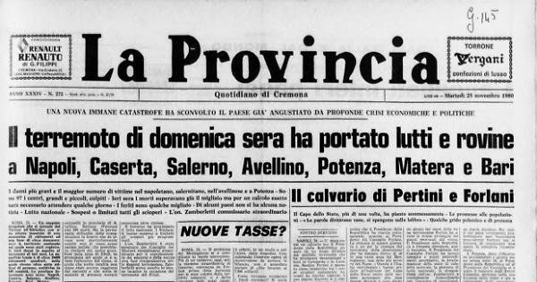 I danni più gravi e il maggior numero di vittime nel napoletano, salernitano, nell'avellinese e a Potenza - Sono 97 i centri, grandi e piccoli, colpiti - Ieri sera i morti superavano già il migliaio - I feriti sono qualche migliaio - Di alcuni paesi non si ha alcuna notizia - Lutto nazionale - Sospesi o limitati tutti gli scioperi - L'on. Zamberletti commissario straordinario