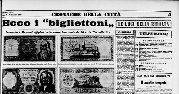 Per l'esattezza si può aggiungere che la banconota di 50 mila lire (Leonardo) ha le seguenti misure: Mt 16.5x8, mentre il biglietto da 100 mila lire (Manzoni) e lungo cm. 17,5 ed alto 8,5.