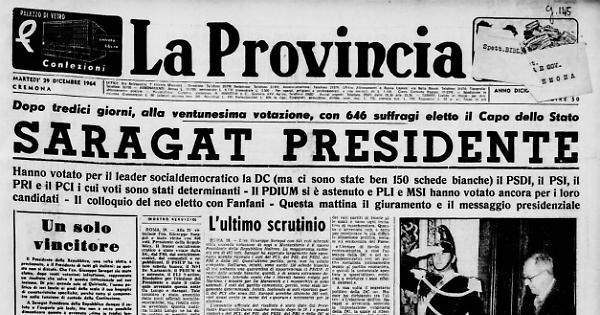 Hanno votato per il leader socialdemocratico la DC (ma ci sono state ben 150 schede bianche) il PSDI, il PSI, il PRI e il PCI i cui voti sono stati determinanti - Il PDIUM si è astenuto e PLI e MSI hanno votato ancora per i loro candidati