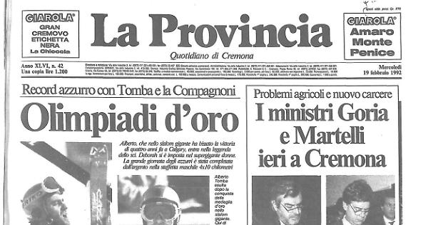«Dedico la mia vittoria alla mia famiglia, a tutti gli italiani che sono qui, e a Gustavo (Thoeni, l'ex campione olimpico che gli fa da allenatore e consigliere, ndr). Qualcuno dice che se ne andrà; non so niente di preciso, io lo vorrei ancora con me. Ci siamo trovati dopo la prima manche e mi ha convinto che non avevo niente da temere, che ce l'avrei fatta. Lo aspetto per abbracciarlo, speriamo che una volta tanto venga qui; è l'unico che non si fa mai vedere al traguardo dopo una mia vittoria». Passando poi a parlare della gara, il bolognese ha affermato: «Nella prima manche ho sbagliato da metà in giù, nella seconda ho fatto il contrario ed ho sciato meglio in fondo che alla partenza. Non ero convinto di vincere il gigante. E' stata una gara magnifica, regolare e sono venuti fuori tutti ì migliori; speriamo che sia così anche sabato».Richiesto di un paragone con i due successi di Calgary, Tomba ha aggiunto: «Allora è stato tutto più facile, non c'era questa pressione, questa responsabilità. Vincere in due olimpiadi diverse è un record, è il massimo e quindi sto vivendo un giorno indimenticabile. Adesso chiedo alla vita un'altra medaglia d'oro. Magari già nello slalom; ma ho anche la fortuna di avere a disposizione le olimpiadi di Lillehammer, tra due anni».
