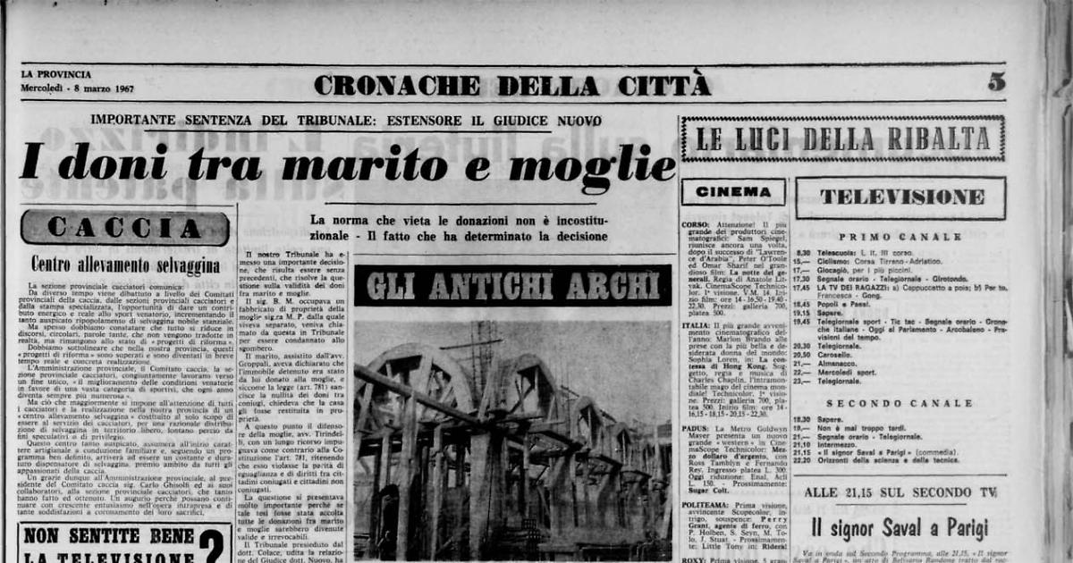 Il marito, assistito dall'avv. Groppali, aveva dichiarato che l'immobile detenuto era stato da lui donato alla moglie, e siccome la legge (art. 781) sancisce la nullità dei doni tra coniugi, chiedeva che la casa gli fosse restituita in proprietà.