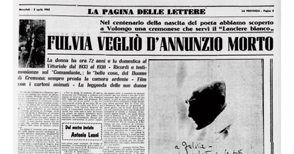 Fulvia Tenchini dal 1933 al 1938 servì fedelmente d'Annunzio e quella tragica sera del 1° marzo vestì il corpo ormai inanimato del Poeta. Ella è una delle testimonianze viventi, purtroppo ormai rare, degli ultimi anni del Poeta.