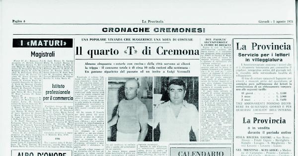 Stendendo il volume lombardo della sua «Guida all'Italia piacevole», Luigi Veronelli ha concesso ampio spazio a Cremona: il conosciutissimo «esperto in gastronomia» della televisione ha accennato alle caratteristiche ambientali della nostra città e non ha saputo esimersi dal tradurre in vernacolo meneghino il trinomio «tètt, torron e torrazz», ma ha lasciato nella penna la vivanda che probabilmente costituisce il richiamo più caratteristico delle nostre «osterie con cucina».