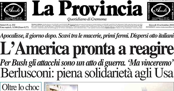 Tutte le piste portano verso la stessa persona: Osama Bin Laden. Poche ore dopo l’attacco contro le Torri Gemelle e il Pentagono migliaia di inquirenti Usa sono entrati in azione per trasformare in certezza quella che a molti esperti americani appare una ovvia conclusione: dietro le stragi di New York e Washington si nasconde la mano del mortale nemico degli Stati Uniti.