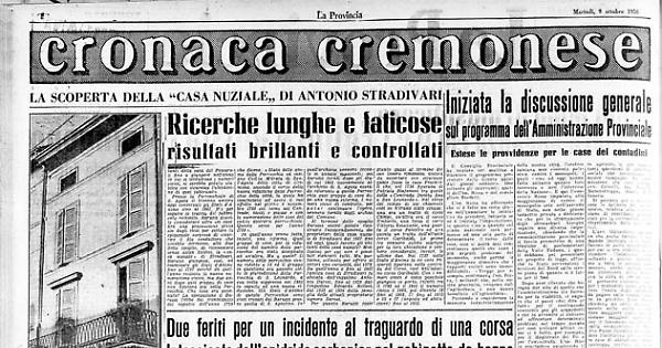 La sensazionale scoperta è stata fatta dal giovane liutologo cremonese Arnaldo Baruzzi, residente nella nostra città; la «casa nuziale» di Antonio Stradivari era rimasta sconosciuta fino ad oggi anche ai maggiori studiosi e cultori di storia della liuteria.