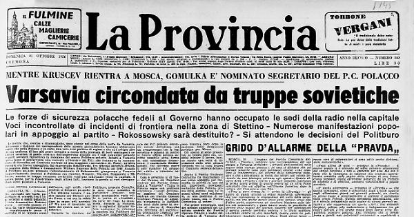 Le notizie che, concise e drammatiche, sono giunte nel corso della notte da Varsavia, attraverso i dispacci dei corrispondenti delle agenzie giornalistiche, lasciano abbastanza capire che nella Polonia è in corso una vera crisi politica di regime e che si è evitato sino ad ora qualcosa di ben più grave soltanto a causa della presenza di forti contingenti corazzati sovietici.