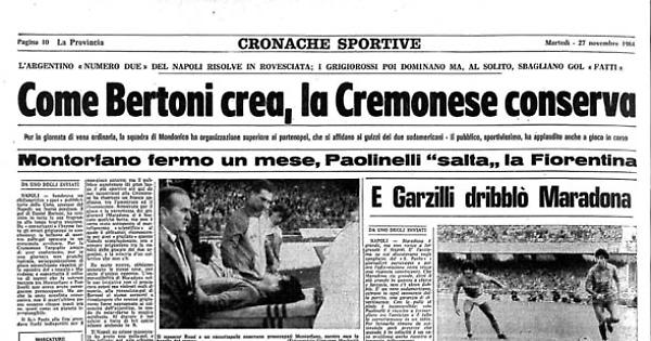 Il San Paolo alla fine grondava fischi indispettiti per il non-gioco azzurro; ma il pubblico napoletano (dì gran lunga il più sportivo sin qui da noi incontrato) alla Cremonese ha riservato un franco applauso, tra l'ammirato ed il riconoscente. Ammirato per il gioco e la correttezza dei grigiorossi (Maradona si è beccato qualche botta, ma non è certo stato sottoposto al martellamento «scientifico» al quale è abituato); riconoscente per aver «graziato» questo Napule sconclusionato, ora e sempre prigioniero tra la nobiltà delle giocate dei due argentini, e la miseria d'un collettivo che non c'è.