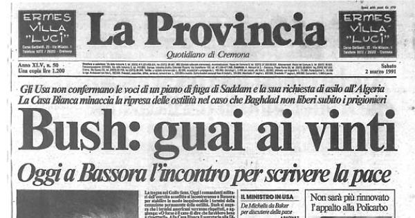 La tregua nel Golfo tiene. Oggi i comandanti militari dell'esercito sconfitto si incontreranno a Bassora per stabilire in modo inequivocabile i termini della cessazione permanente delle ostilità. Bush si augura che i termini americani verranno rispettati, e aggiunge: «O forse è il caso di dire che farebbero bene a rispettarli». Alla Casa Bianca il segretario alla Difesa, Cheney, ha usato un tono non molto dissimile, lasciando intendere che da un momento all'altro le forze armate americane potrebbero abbandonare la posizione difensiva assunta nelle ultime ore e far scattare una nuova offensiva. «Abbiamo distrutto il loro esercito. Abbiamo gettato Baghdad nel buio, e adesso se non si impegnano a rispettare in modo esplicito le risoluzioni dell'Onu vanno in cerca di nuovi dolori». In particolare Cheney ha fatto riferimento ad attacchi di Scud contro Israele o all'ipotesi che gli iracheni possano rifiutarsi di liberare immediatamente i prigionieri di guerra.