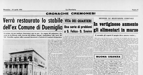 Riportiamo per sommi capi il risultato di una indagine svolta dagli uffici comunali su diretto interessamento del sindaco Zanoni, sempre sensibile al problema del recupero culturale di Cremona.