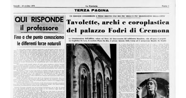 Il « fodro » era un tributo che, nel Medioevo, si doveva ad un sovrano, all'atto del passaggio o della sosta del suo esercito in un determinato paese, e consisteva nella somministrazione di fieno e di biada per i cavalli — in lingua longobarda, il foraggio si chiamava « fodr » — in una misura commisurata al numero degli abitanti. Il « fodro » si trasformò, nel nono secolo. in un'imposta vera e propria, da versare semestralmente all'incaricato del monarca. Verso l'anno 850. l'ufficio di riscuotere la gabella venne assolto a Cremona da un congiunto dell'imperatore Lotario, di nome Teodorico, che ebbe modo di imparentarsi con la famiglia Ala: nacque così uno dei più ricchi ed influenti casati della nostra città, quello dei Fodri, la cui radice etimologica è motivata dalla professione dell'avo. Già cospicua nei secoli attorno al Mille, la fortuna dei Fodri ebbe l'apogeo dopo l'avvento di Francesco Sforza al seggio ducale milanese. E' nota la predilezione del condottiero veneto per Cremona, dove celebrò le nozze principesche con Bianca Maria Visconti, nctt'allora chiesetta monastica di San Sigismondo. I discendenti dell'antico esattore, che si erano dimostrati fedelissimi alla causa sforzesca, crebbero di censo e di importanza e diventarono lina delle potenze economiche della Lombardia.