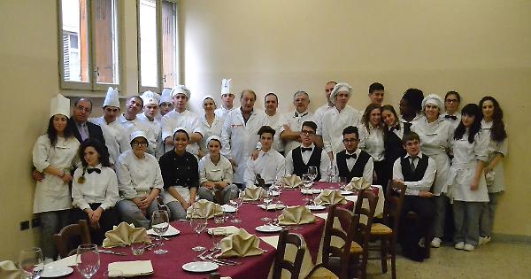 CREMONA - Scuola di cucina con un big dei fornelli all’Istituto Einaudi e mattina indimenticabile per gli studenti del corso alberghiero:Alberto Naponi, cuoco, pasticcere, protagonista indiscusso e vincitore morale di Masterchef 2014 ha dispensato consigli, suggerimenti e pillole di saggezza ad una nutrita schiera di giovanissimi aspirati cuochi, subito conquistati dai suoi modi garbati, dalla sua vitalità, dalla sua simpatia. Maestro e allievi (nella foto grande l’applauso finale al termine delle fatiche culinarie)hanno cucinato insieme due delle migliori ricette dolci e salate ispirate alla tradizione cremonese, contenute nel volume che ‘il Napo’ha appena pubblicato per Rizzoli: ‘La poesia è un risotto all’acciuga’. Vi invitiamo a provarle, seguendo le indicazioni riportate nella pagina a fianco.