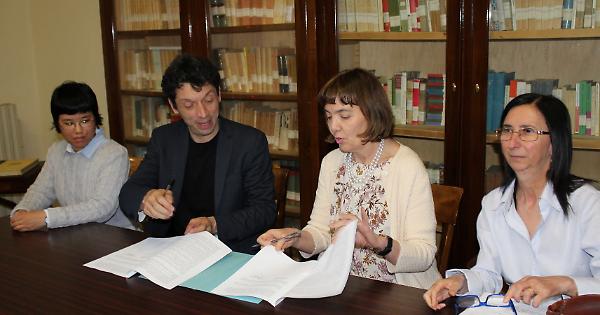 CREMONA - Già negli scorsi mesi se ne parlava, ma la firma della convenzione tra la Rete Bibliotecaria Bresciana e Cremonese e il liceo Manin è avvenuta venerdì 26, nella biblioteca dell'ex convento dei Gesuiti di via Cavallotti. Presente il sindaco, Gianluca Galimberti, che con la dirigente scolastica Mirelva Mondini ha ufficializzato l'entrata della biblioteca d'Istituto nel gruppo bibliotecario, rendendo il liceo Manin anche un punto di accesso della rete provinciale e un riferimento per i cittadini che desiderano accedere ai servizi bibliotecari. Saluti iniziali da parte della professoressa Raimonda Lobina, che con le docenti Ilaria Spotti e Pierangela Porcu ha seguito l'iter per ufficializzare un progetto in cantiere da diversi anni. Presenti anche Francesca Moruzzi, coordinatrice della rete bibliotecaria, che ha sottolineato l'importanza del servizio offerto, ed Arianna Truong, volontaria del Servizio Civile Nazionale, che, coadiuvata da Petra Kapitány (Servizio Volontario Europeo), negli ultimi mesi ha catalogato più di seicento libri negli spazi del liceo.