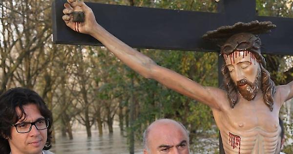 BRESCELLO — Come nel film di don Camillo e Peppone martedì il parroco don Evandro Gherardi ha portato il ‘Cristo parlante’ in processione fino alle rive del Po. Un modo «per pregare per le vittime delle alluvioni — ha spiegato — e chiedere la protezione di Dio per la piena che sta interessando le nostre zone e ci preoccupa». La processione, sindaco Marcello Coffrini in testa, è iniziata alle 15.30 dalla chiesa, seguita da circa 500 persone, ed è arrivata fino al punto dove il fiume Enza sfocia nel Po. Qui don Gherardi è entrato nella golena allagata immergendo il crocifisso per la benedizione. sarà una coincidenza, ma il fiume ha cominciato a scendere.