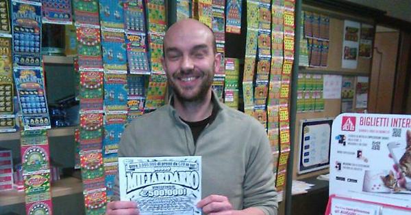 Il tabaccaio Mirko con la fotocopia del biglietto vincente