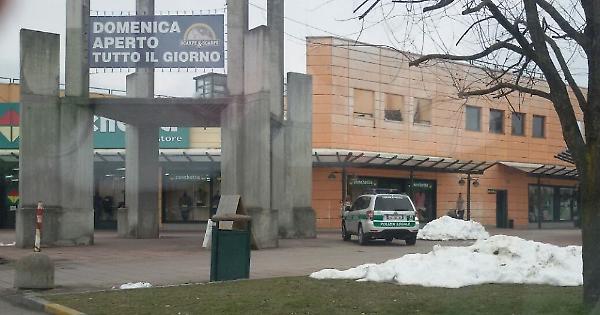 Un'auto della polizia locale di Viadana al centro commerciale