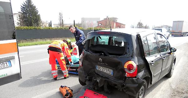 VIADANA (Cogozzo) - Una signora di Casalmaggiore è rimasta ferita in un incidente avvenuto alle 11.30 di venerdì 27 marzo sulla SS358, tra Cicognara e Cogozzo, all'altezza dell'incrocio dell'Iper Simply. L.V. era alla guida della sua Renaul Modus quando è stata tamponata da un furgoncino Ford condotto da G.V. di Rivarolo del Re. Illeso l'uomo, mentre la donna, cosciente, è stata trasportata in codice giallo all'ospedale Oglio Po dall'ambulanza della Croce verde di Viadana. Sul posto sono intervenuto gli agenti della Polizia locale di Viadana per i rilievi di legge e per regolare il traffico durante le operazione di sgombero dei veicoli.