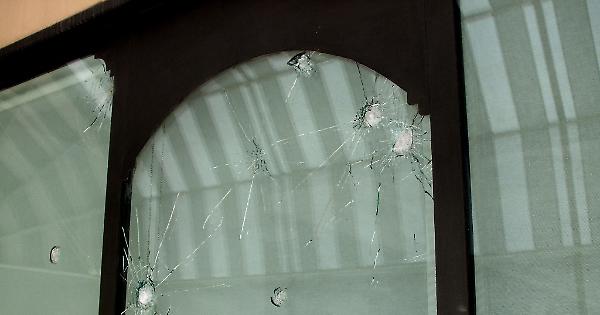 La vetrina colpita dalle biglie di marmo a Casalmaggiore