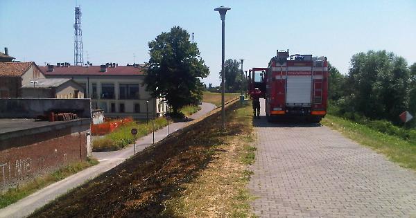 CASALMAGGIORE - Il fuoco ha divorato l'erba appena tagliata sull'argine panoramico (fronte opposto al fiume) più o meno di fronte al parcheggio retrostante il vecchio ospedale di via Cairoli. Interessato dal rogo un fronte di un centinaio di metri. L'intera banconata, dalla sommità alla sottostante 'alzaia', è ridotta a cenere. Gli agenti della polizia locale, il cui comando è stato chiamato da alcuni cittadini, sono intervenuti per primi poco dopo le 13 circoscrivendo l'incendio con gli estintori. Nel frattempo è stata allertata una squadra di vigili del fuoco di Viadana che, una volta sul posto, in pochi minuti ha riportato la situazione alla normalità. Difficile dire, al momento, se l'incendio abbia avuto natura accidentale (il classico mozzicone sull'erba tagliata e ormai secca sotto il sole) oppure dolosa.