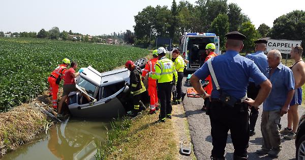 CASALMAGGIORE (CAPPELLA) - Spettacolare incidente stradale, per fortuna senza gravi conseguenze, attorno alle 12 di mercoledì 15 luglio. Un pensionato di Rivarolo del Re (A.B. di 74 anni) stava procedendo con la sua Fiat Panda da Casalmaggiore verso la località Cappella per raggiungere il suo paese. Appena prima del centro abitato, l'uomo si è probabilmente distratto nell'affrontare una curva a 90°, le ruote sono finite su uno scalino tra l'asfalto e il ciglio della strada, perdendo il controllo del mezzo e finendo così nel canale pieno d'acqua che costeggia la via d'accesso a Cappella. Immediati sono scattati i soccorsi e sul luogo del fuoristrada sono arrivati un'ambulanza della Padania Soccorso, l'automedica dell'ospedale Oglio Po, i carabinieri del radiomobile di Casalmaggiore e i vigili del fuoco di Viadana. L'uomo ha subito una forte botta in testa ma è stato trasportato all'ospedale Oglio Po in codice verde.