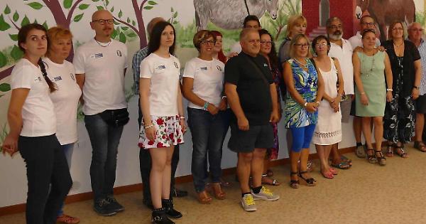 GUSSOLA - «La nostra stanza aveva bisogno di essere abbellita e così il gruppo dei madonnari ‘Rodomonte Gonzaga’ di Rivarolo Mantovano, ai quali siamo molto grati, ci ha fatto questo dono immenso. Oltre a essere molto bravi, sono persone generose e disponibili». Così, domenica sera, 2 agosto, verso le 19.15, il presidente del Centro Natura Amica Andrea Lusenti ha esordito sottolineando la bellezza del dipinto realizzato su una parete della sede dell’associazione, specializzata in attività di onoterapia (terapia con l’asino).