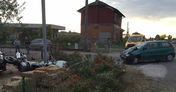 CALVATONE - Scontro tra un'auto e una motocicletta, con la due ruote che, proiettata all'interno di un vivaio, va a sbattere contro una vettura parcheggiata.