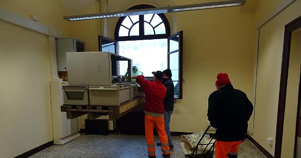 CASALMAGGIORE - Movimento di mezzi e di uomini, nella mattinata di martedì 1 dicembre, per il trasferimento dell'ufficio tributi del Comune dalla ex pretura al piano terra del municipio, negli ambienti in cui fino a qualche tempo fa si trovava l'ufficio tecnico.