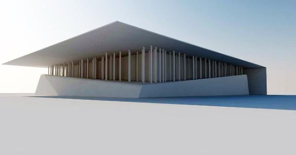 Il rendering dell'esterno del nuovo palasport di Viadana