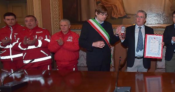 CASALMAGGIORE — La ‘Croce commemorativa’ della Croce Rossa Italiana a Elvezio Storti, fondatore della ditta ‘Trasporti Pesanti’, per «aver partecipato in supporto alle operazioni di soccorso e di assistenza nell’ambito dell’emergenza-sisma dell’Emilia Romagna nel 2012». La massima onorificenza della Croce Rossa Italiana, medaglia e attestato, gli è stata conferita dal presidente nazionale Francesco Rocca (controfirmata dal direttore generale Patrizia Ravaioli) e gli è stata consegnata ufficialmente — nel corso di una sobria cerimonia svoltasi sabato mattina nella sala consiliare del municipio — dal presidente del comitato locale Rino Berardi, affiancato dal vicepresidente Luigi Borghesi e da alcuni volontari in divisa con tanto di labaro: si è voluto rendere più istituzionale il momento coinvolgendo anche il sindaco Filippo Bongiovanni, presente con indosso la fascia tricolore. Proprio quest’ultimo è stato il primo a prendere la parola: «Grazie alla Croce Rossa, al presidente e al vicepresidente del comitato locale, per tutto ciò che fanno per Casalmaggiore. Quella da loro rappresentata è un’associazione fortissima, in salute, che investe molto per il bene della nostra comunità e di quelle vicine. E oggi si dà il giusto riconoscimento a un imprenditore il quale, oltre a svolgere un’attività con cui dà lavoro a tanti, sa essere solidale».