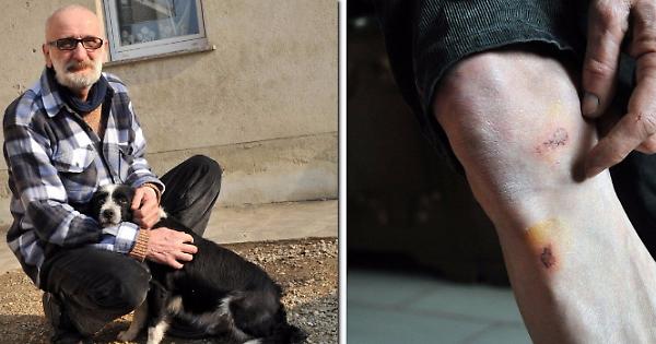 Leonardo Zanchi con il suo cane e le ferite a un braccio