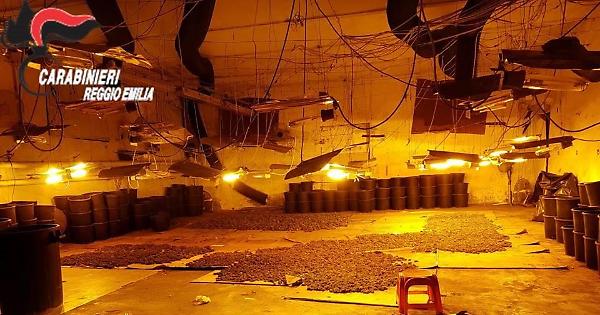 NOVELLARA (Reggio Emilia) - Una vera e propria fabbrica di marijuana suddivisa i reparti produttivi (coltivazione, irradiazione ed essiccazione) è stata localizzata in provincia di Reggio Emilia dai carabinieri della compagnia di Guastalla guidati dal maggiore Luigi Regni ex comandante dell'arma di Casalmaggiore, al cui interno i militari hanno sequestrato circa 2 quintali di marijuana, oltre 1.600 piante e un avveniristico impianto di areazione, irradiamento e irrigazione grazie al quale i due imprenditori, finiti in manette, erano riusciti a riprodurre la corretta adattabilità per l’habitat di produzione dello stupefacente.