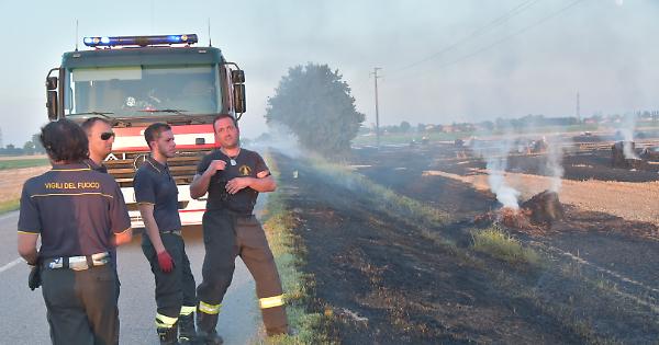 RIVAROLO DEL RE - Vigili del fuoco di Viadana e di Cremona particolarmente impegnati, nella serata di venerdì 7 luglio, dalle 20 circa, in seguito ad un vasto incendio che si è sviluppato tra Villanova e il capoluogo Rivarolo del Re e tra Villanova e Rivarolo Mantovano. A prendere fuoco non solo le sterpaglie a lato strada, ma anche decine di rotoballe di fieno. Presenti anche alcuni agricoltori nel tentativo di spegnere le fiamme. Sul posto la polizia stradale e i carabinieri di Solarolo Rainerio. Il vasto incendio si è propagato su campi diversi, difficile pensare sia accidentale.