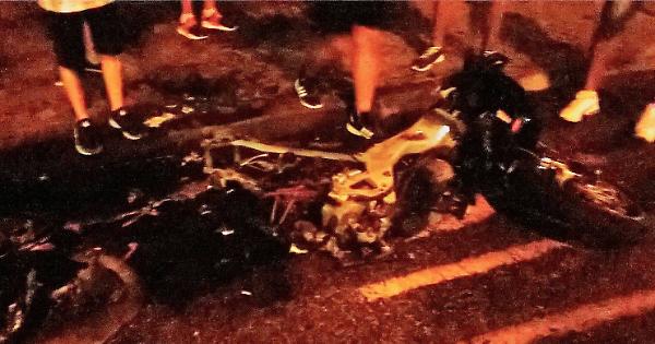 Quello che è rimasto della moto andata a fuoco