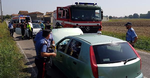 CASALMAGGIORE (Vicobellignano) - Scontro frontale tra due autovetture in via Dante Alighieri intorno alle 10 e 15 di giovedì 3 agosto. Protagoniste la Fiat Punto condotta da G.A., una 38enne di Vicobellignano, con a bordo una donna, e la Fiat 500 guidata da un'altra donna, D.B., 46 anni, di Vicobellignano. Per cause in via di verifica da parte dei carabinieri del radiomobile di Casalmaggiore, pare che la Punto, diretta verso Vicobellignano, ad alcune decine di metri dal cimitero, abbia invaso la corsia opposta. Forse un malore, forse una distrazione, non si sa. La conducente della 500, diretta verso l'argine, non ha potuto evitare lo scontro frontale. Sul posto per i soccorsi l'autoambulanza della Padana Soccorso, l'automedica dell'Oglio Po e i vigili del fuoco di Viadana. La conducente della Punto è uscita autonomamente dall'abitacolo, mentre è stata estratta l'altra donna. Lesioni da codice giallo, che indica media gravità (inizialmente era stato indicato il codice verde dall'Areu). Danni rilevanti ai mezzi.