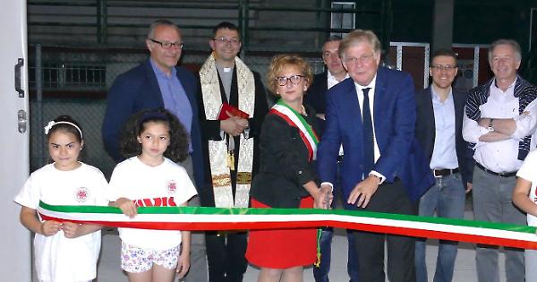 PIADENA - Grande festa, sabato 19 maggio, per l’inaugurazione della nuova struttura sportiva coperta di via XX Settembre. Dopo il taglio del nastro, il sindaco Ivana Cavazzini ha espresso la soddisfazione dell’amministrazione comunale per il campetto in sintetico e ora la nuova palestra, «arricchita dalla realizzazione del nuovo campo da beach volley» e ha ringraziato quanti hanno partecipato: la struttura comunale, il Consorzio Ercole, la ditta costruttrice Tipiesse, il geometra Colombo, gli uomini di cantiere, Roberto Guarreschi, gli assessori Fulvio Notari e Maurizio Bastoni e per la generosità Giorgio Pizzoni, titolare della Pool Pharma, che ha consentito l’acquisto degli arredi, e la Car Terminal nelle persone del direttore Giacchello e del titolare Altmann, che ha finanziato integralmente il campo da beach volley.