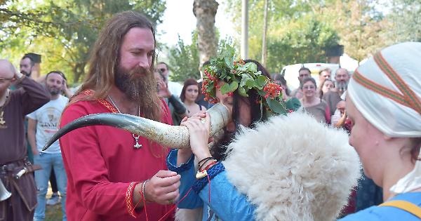 VIADANA - Tanta curiosità anche quest’anno per la ‘Midgard Viking Folk Fest’, la rievocazione vichinga che ha visto coinvolti, nell’area boschiva vicina all’ostello da Bortolino, oltre 200 rievocatori in costume, alcuni dei quali giunti appositamente dagli Stati Uniti. Una immersione nel periodo storico vichingo e all’ambito sassone, longobardo, slavo e baltico. Una manifestazione davvero originale, attuata con estrema serietà, che domenica 16 settembre ha proposto anche un matrimonio, tra Federica e Giovanni di Monza. Nozze alla vichinga, ovviamente, quindi all’aperto, in un boschetto, per dare più visibilità agli invitati e ai testimoni, oltre che essere il luogo più indicato per invocare le divinità della fertilità e del matrimonio. La manifestazione è nata nel 2013 come festa del gruppo di rievocazione Fjording.Sønner.Hirð (tuttora i principali organizzatori).