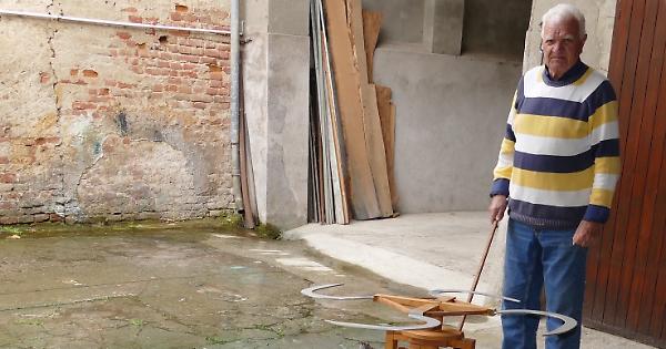 MOTTA BALUFFI (12 aprile 2019) - Lanciato contro i nemici, seminava panico e distruzione. E a vederlo dal vivo, seppure in una dimensione ridotta, fa davvero una certa impressione il ‘carro falciante’ di Leonardo da Vinci, l’ultima ricostruzione realizzata da Romano Meloni, classe 1938, falegname in pensione di Motta Baluffi non nuovo a spettacolari opere del genere. «Ci ho dedicato tre mesi», racconta l’artigiano-artista, ottantenne innamorato delle invenzioni leonardesche. «Questa macchina da guerra - spiega Meloni - è costituita da un lungo carro a due ruote a cui sono collegate falci rotanti attraverso un albero di trasmissione e ingranaggi, detti cuscinetti a gabbia». Ed era il sistema di ingranaggi che faceva ruotare le falci, con effetti devastanti. Il mezzo militare era trainato da cavalli. «All’inizio - spiega l’autore del modello - ho avuto anche qualche momento di difficoltà, perché non riuscivo a far funzionare il meccanismo. A forza di provare e riprovare, sono riuscito a farcela. Credo sia la macchina più bella tra quelle che ho fatto».