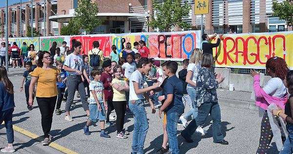 CASALMAGGIORE (1 giugno 2019) - Ieri, in occasione della ‘Giornata dell'Amicizia’, tutte le sezioni e le classi dell’istituto comprensivo ‘Marconi’ di Casalmaggiore hanno esposto fuori dagli edifici scolastici gli elaborati prodotti dagli alunni durante l’anno all’interno del progetto ‘Il peso delle parole’ che aveva come primo obiettivo la prevenzione del bullismo e del cyberbullismo. Una vera esplosione di colori, sia a Casalmaggiore che nel plesso di Rivarolo del Re, dove simboli e parole significativi in questo percorso hanno preso la forma di un murales. «Si è trattato — spiegano la dirigente scolastica Cinzia Dall’Asta e la referente Silvia Maffi — di un progetto in verticale, che ha coinvolto tutte le scuole dell’istituto, cioè le scuole dell’infanzia di Casalmaggiore e Rivarolo, le primarie di entrambi i Comuni, nonché la scuola media di Rivarolo del Re».