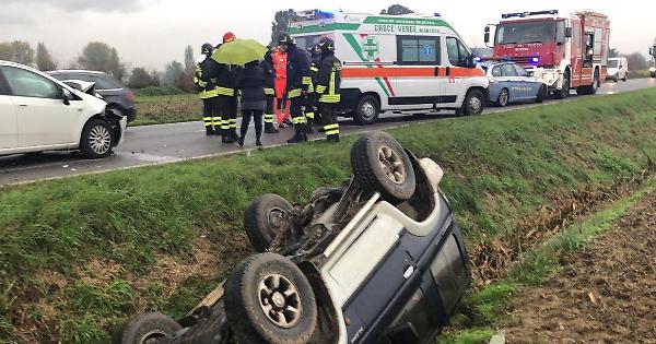 SAN MARTINO DEL LAGO (11 novembre 2019) - Incidente stradale questa mattina intorno alle 8 sulla Giuseppina tra San Martino del Lago e Cingia. Collisione fra due auto: una Mitsubishi guidata da un 61enne di Casanova d'Offredi - pare proveniente da San Martino del Lago in direzione Cingia - si è ribaltata nel fosso dopo lo scontro con una Punto condotta da un 23enne. Entrambi sono stati portati all'Ospedale per accertamenti. Presenti la Polstrada di Casalmaggiore per i rilievi e i Vigili del Fuoco di Cremona.