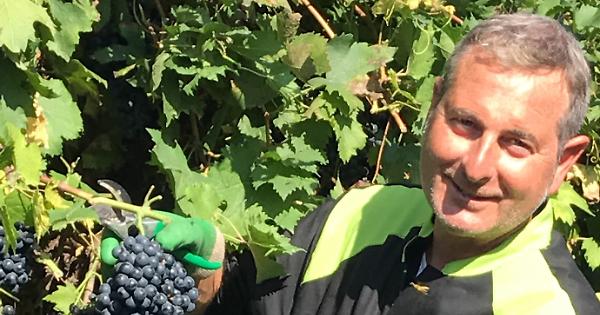 Enrico Bresciani al lavoro in una delle vigne di Rivarolo Mantovano