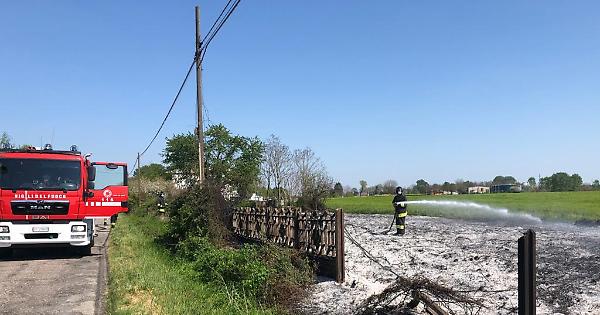 TORRICELLA DEL PIZZO (15 aprile 2020) - Piccolo appezzamento di terreno a fuoco nel primo pomeriggio di oggi a Torricella, lungo la strada che dall’incrocio con la provinciale Bassa di Casalmaggiore porta in paese. A fuoco solo erbacce e sterpaglie. Sul posto i vigili del fuoco di Cremona che hanno completato lo spegnimento del rogo. Ignote le cause. Si pensa a un mozzicone di sigaretta lanciato da un’auto.